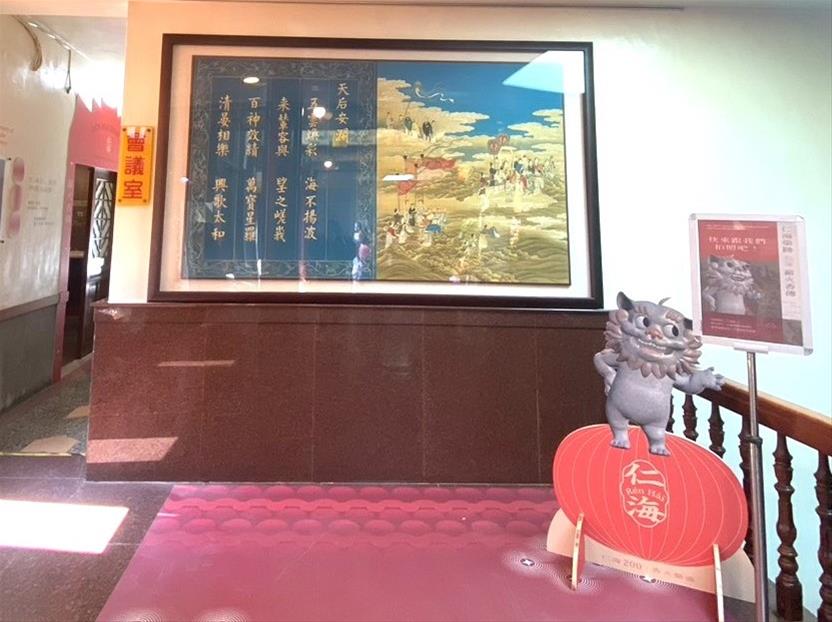 故宮表示,近年與中壢仁海宮持續合作,繼舉辦「國寶巡遊─國立故宮博物院數位新媒體展」後,再推出「皕載風華─郎世寧數位藝術展」。透過一系列展覽合作,仁海宮支持故宮數位展覽與巡展推動,故宮亦特別致贈《天后安瀾》複製畫,象徵博物館典藏與地方信仰文化交流。《天后安瀾》為故宮院藏唯一與媽祖信仰相關的畫作,描繪天上聖母庇佑海疆、安瀾護民的意象,與仁海宮奉祀天上聖母、守護地方的歷史相互輝映。此次故宮致贈複製畫長存中壢仁海宮,讓民眾在宗教場域近距離欣賞故宮典藏圖像,展現故宮文物藝術融入地方信仰文化的意義。