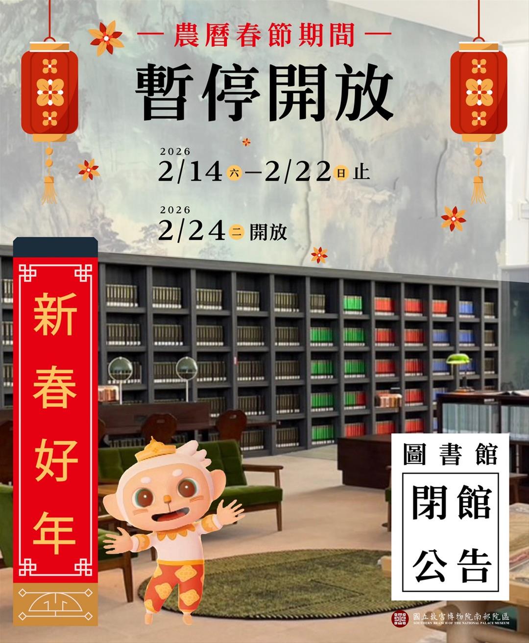 | 參觀消息 | 115年南部院區圖書館農曆春節期間閉館公告