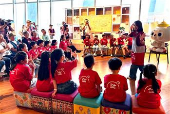 今(29)日下午,於故宮南院兒創中心舉辦故宮與佳音英語「品牌聯名發表會」,正式宣告雙方的合作計畫。園區的透南風廣場則有吉祥物「哈奴曼」與「佳音英語」人氣角色「布丁貓」、「Justin」、「Joyce」的巨型氣球裝置,迎接小貴賓蒞臨。故宮宣布此次合作包括「主題課程」、「聯名特刊」與「限量周邊」等三大類別共計24種商品,打造「文化×學習×生活」的沉浸式教育體驗。現場有十幾名小朋友一同體驗聯名教案,會場一旁則展示著聯名商品及合作成果。