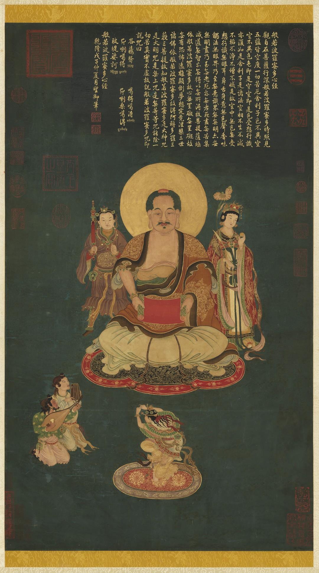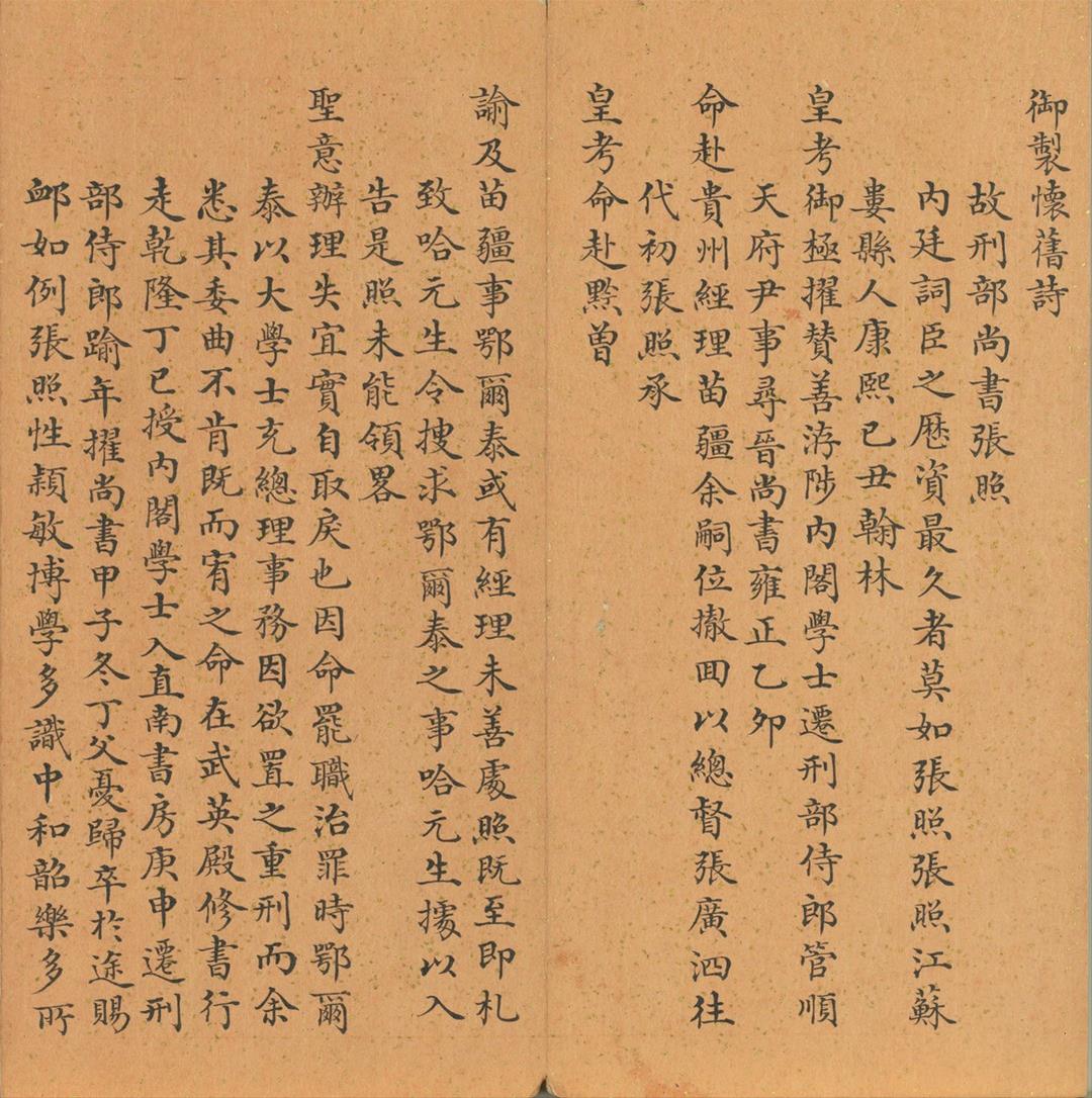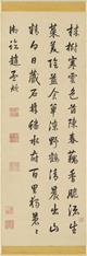 乾隆即位後逐漸轉而重用張照,對於「乾隆御筆」形象塑造更為關鍵。乾隆對張照評價極高,甚至推為「羲之後一人」。以〈清高宗御臨趙孟頫詩帖〉為例,雖署為皇帝名義,但整體用筆精到、結構嚴整,與乾隆本人常見書風明顯有別,學界多認為應為張照代筆。隨著張照過世,轉由汪由敦、于敏中等詞臣接續代筆工作。例如〈清 張宗蒼 江潮圖〉題詩用筆線條圓厚、墨色自然,展現汪由敦成熟穩健書風;〈宋人 畫無量壽佛〉上的泥金御筆心經,則因筆法精熟、線條變化豐富,推測出自于敏中之手。乾隆晚年年事漸高、目力衰退,轉由董誥奉敕書寫,代筆制度亦進入相對透明的階段。〈清 董誥 奉勅題張照自書詩〉即為董誥代筆之作,用筆細勁秀逸,結字端正優美,體勢寬博舒展,詩文表露乾隆對張照的追懷,並評述其一生功過。