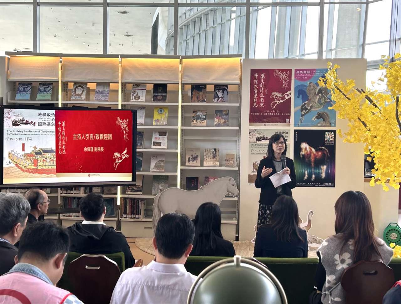 展覽中以郎世寧〈百駿圖〉為重要參照,透過相關圖像與說明,解析繪畫中融合西方透視與明暗渲染的手法,如何形塑畫面縱深與馬匹肌理,數位展示〈古畫動漫—百駿圖〉動畫展演呈現畫中駿馬的生態,與書畫文物形成有趣的對照;民國畫家馬晉於1923年摹繪〈百駿圖〉,以傳統工筆結合西洋明暗設色,展現近代畫家對宮廷畫風的再詮釋,亦反映「郎派」已被視為中國畫傳統的一部分。展覽並梳理歷代馬畫常見主題,如天馬、貢馬、瘦馬、番馬與人馬,呈現馬畫題材在文人精神與歷史境遇中的多重意涵。