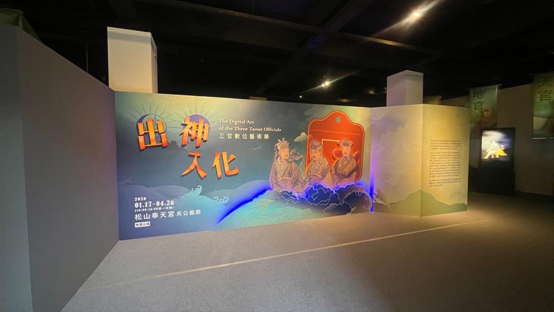 故宮表示,「出神入化——三官數位藝術展」,運用新媒體與數位科技,讓觀眾從不同視角親近神明。展覽分為「與神相遇——初探三官」、「神歷其境——走入三官」兩大展區,共計七大展件,包含全新製作的數位裝置。「細探三官」互動裝置以高解析投影打破空間限制,將平日位於奉天宮殿堂深處、難窺全貌的三官大帝神尊,轉化為近在咫尺的影像,讓信眾能近距離凝視神像莊嚴的雕刻工藝,並與古畫中的神明樣貌相互輝映。「三官VR:天官賜福」配合農曆春節與上元節氛圍,觀眾戴上VR裝置後,將由靈獸「青龍」引領,穿梭於炮火與燈彩交織的民俗盛會,身歷其境感受天官出巡的威儀與祝福。「童樂三官:共創遊畫」則以三官IP打造家庭共創區,歡迎大小朋友親手彩繪隨從角色,並加入巡遊隊伍,與神同樂。