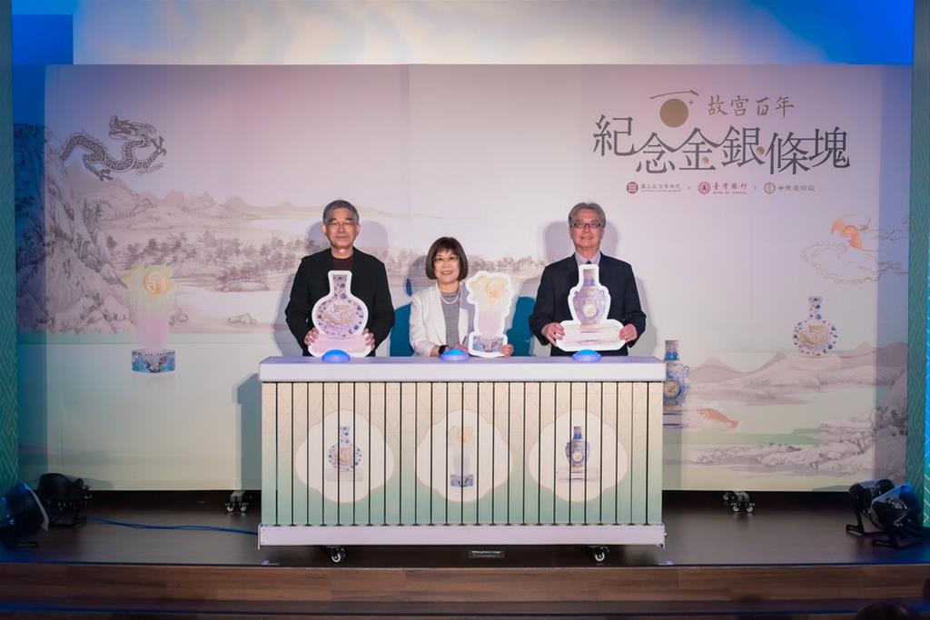 迎接2025年國立故宮博物院百年里程碑,故宮攜手臺灣銀行、中央造幣廠跨界合作,今(14)日隆重推出「故宮百年紀念金銀條塊」系列商品,由故宮黃永泰副院長、王耀鋒主秘;臺灣銀行凌忠嫄董事長、中央造幣廠葉牧青廠長等親自出席上市發表會。「故宮百年紀念金銀條塊」共有三款,將故宮典藏的藝術瑰寶,透過中央造幣廠精湛的鑄造工藝完美再現,凝鍊為極具收藏價值的貴金屬珍品,以文化藝術、工藝與金融的跨界創新,作為向故宮百年傳承致敬的輝煌獻禮。