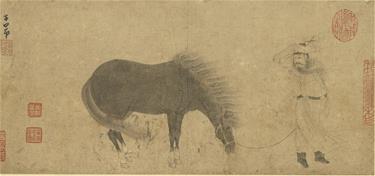 即將迎接馬年,「動物為伴」特展透過歷代豐富的圖像,探索動物與人從單純的飼養關係到深層心靈依靠的各種互動樣貌。五代趙嵒的〈八達春遊圖〉是文化部指定國寶,為存世年代極早的宮廷園苑重要畫蹟,描繪八名貴族騎馬馳騁於宮苑中的情狀,充分展現人馬間的熟悉與默契;而另一幅元代趙孟頫的〈調良圖〉則描繪疾風中奚官回首關照馬匹,人馬一同等待風勢稍歇的淡然溫情。