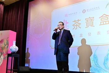 國立故宮博物院與桃園市政府首度攜手合作,今(2)日舉行聯名商品發表會,由故宮蕭宗煌院長、黃永泰副院長、王耀鋒主秘,以及桃園市政府張善政市長、農業部農糧署北區分署黃怡仁副分署長、農業部茶改場蘇宗振場長、農業局陳冠義局長、桃園果菜公司呂淑真董事長、2026臺灣設計展專案辦公室計畫張漢寧總監等貴賓蒞臨出席,共同宣布「桃茶寶盒TAOTEA TREASURE BOX」聯名限定商品正式發售。禮盒設計以故宮典藏〈清 粉彩蟠桃天球瓶〉為靈感,巧妙連結桃園市花「桃花」,融合故宮百年文化底蘊與桃園百年茶香,以「雙桃」跨時空相遇,共譜文化茶韻新風貌。