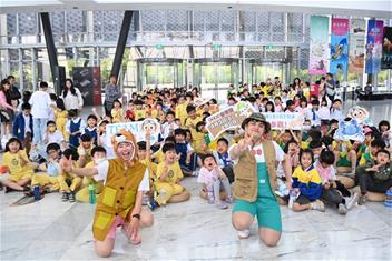 今(2)日上午故宮南院辦理「故宮南院童樂會—TEAM KIDS」開幕活動,「咖哩玩劇團」帶領現場觀眾開心唱跳後,由故宮黃永泰副院長、南院好鄰居嘉科實小林怡慧校長及小朋友、六腳國小林金進校長及小朋友、以及蒜頭國小小朋友約計200名師生共同揭開序幕。黃永泰副院長表示,本年兒童節活動以「地緣政治的國際萬象」特展為企劃核心,看似困難的主題,只要一窺古人的國際交流樣貌,孩子打開眼界的一瞬間,就值得這趟旅程。旅程豐富多元,四天共計96場次活動!兒童節連假期間故宮南院天天開館,更推出超強誠意優惠,只要與一名12 歲以下兒童同行(103年4月3日後出生),全家皆能免費參觀!黃副院長邀請觀眾在連假期間一同走進故宮南院,組隊體驗尋寶的樂趣,歡度愉快的佳節。