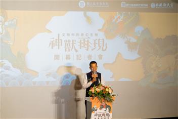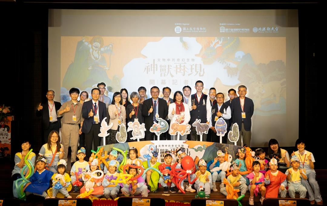 國立故宮博物院北部院區即日起推出「神獸再現—文物中的奇幻生物」特展,帶領大小朋友探索隱身於故宮文物中的奇幻生物,領略古人對自然萬物的想像與祝福。今(23)日開幕記者會由故宮蕭宗煌院長、黃永泰副院長、余佩瑾副院長、王耀鋒主秘共同出席,立法院教文會蔡春綢委員、借展單位北港朝天宮林恒毅董事、蔡連財董事、陳建凱組長、邱彥翔研究員,以及國立臺灣歷史博物館典藏組張淑卿組長、國立雲林科技大學林煥盛副教授共襄盛舉。活動現場特別邀請天鵝堡幼兒園師生參與,小朋友們穿戴親手製作的「神獸小夥伴」裝扮熱情登場,以童趣活力為展覽揭開序幕。