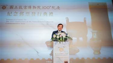 故宮蕭宗煌院長表示,郵票向來有「國家的名片」之稱,感謝中華郵政百年來以故宮文物為主題,共出版130餘套、600多枚的郵票,讓故宮的文物之美,隨著郵件傳進國內外世界各地。適逢故宮百年院慶,故宮攜手中華郵政推出多項特色郵品,包含「北宋蘇軾〈書前赤壁賦〉卷」系列郵票及完整版大型郵摺、《意造-院藏蘇軾墨蹟選》專書附贈〈赤壁賦〉完整版郵票,以及最新發行的「故宮100+院慶紀念郵票」,共同傳遞文物之美。本次百年院慶紀念郵票,精選院藏五件代表性文物,呈現歷代精湛藝術風格。透過郵票,讓民眾不論身在臺灣或海外,都能以觸手可及的方式欣賞故宮珍藏,體現文化共享的理念。另中華郵政特別設計專屬「百年首日戳」,蓋印於首日封上,成為別具紀念意義的收藏。明年「臺北 2026 世界郵展」,故宮將共襄盛舉,除了設攤展示歷年中華郵政發行的故宮文物郵票,更期待與中華郵政攜手合作再創佳績,用郵票與世界交朋友,從臺灣出發,將故宮文物之美傳遞至全世界。
