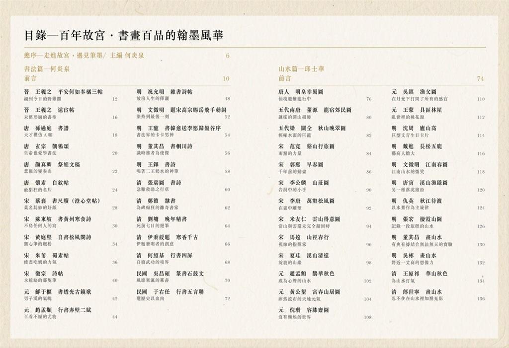 為慶祝國立故宮博物院百年院慶,故宮與聯經出版攜手推出百年紀念鉅作《大美近觀:百年故宮.書畫百品的翰墨風華》。本書由故宮書畫文獻處處長何炎泉主編,與邱士華、林宛儒、蘇雅芬研究員,分別以「書法、山水、人物、花鳥」四大主題,精選百件故宮典藏經典書畫撰文解析,展現跨越千年的筆墨風華與研究新視野。