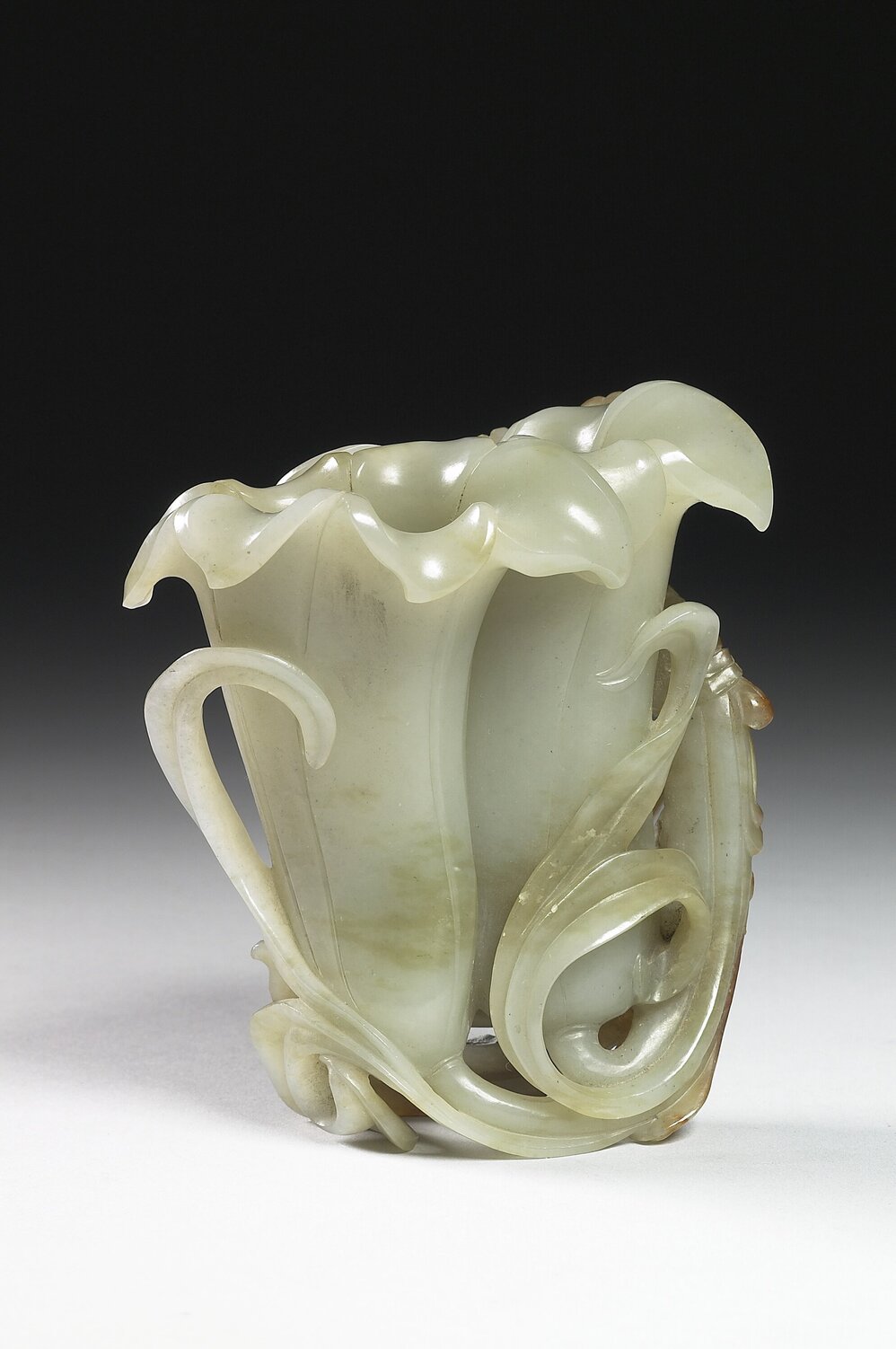 端石硯。硯面右側雕一株蕉樹,左上方以圓月為池。硯右側有「巗蕉」銘,蕉幹上刻「徐郙」章。硯背刻銘:「芭蕉白葉蔚青青,鳳尾斜櫳皓魄瑩,好向綠窗明月夜,濡豪研露寫黃庭。甲午花朝,黃任題」,並鈐印「莘田」。